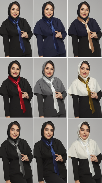 مقنعه نخی و کروات ساتن بوده برای ست کردن با انواع لباس های اداری که از ساتن استفاده شده مناسب ترین گزینه مقنعه و کروات است